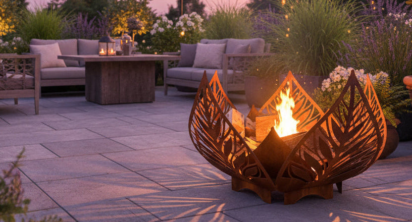 Custom Corten Leaf Lotus Brazier A bold statement in your outdoor entertainment area, perfect...