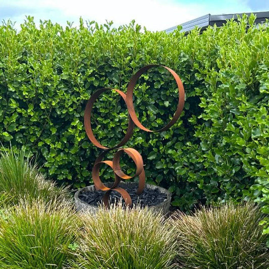 Corten Circle Stack Sizes: Small (stack to left) 535mm overall height Each circle 200mm approx...