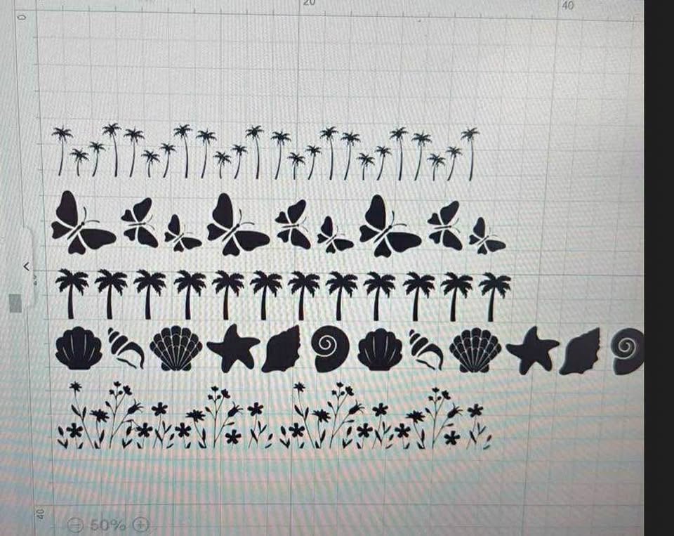 Alternate top edge designs (palms, butterflies, flowers – see 2nd photo)