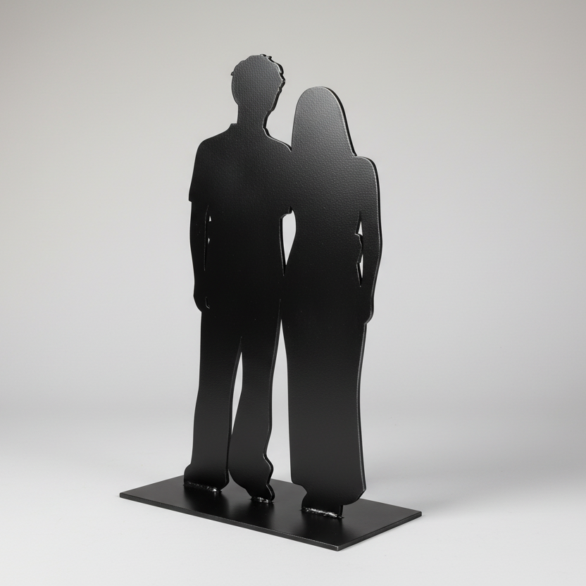 Simply upload your image, and our designer will transform your photo into a clean silhouette that captures the connection, pose, and personality of your relationship. Each piece is carefully fabricated to stand proudly on a shelf, side table, or mantel.